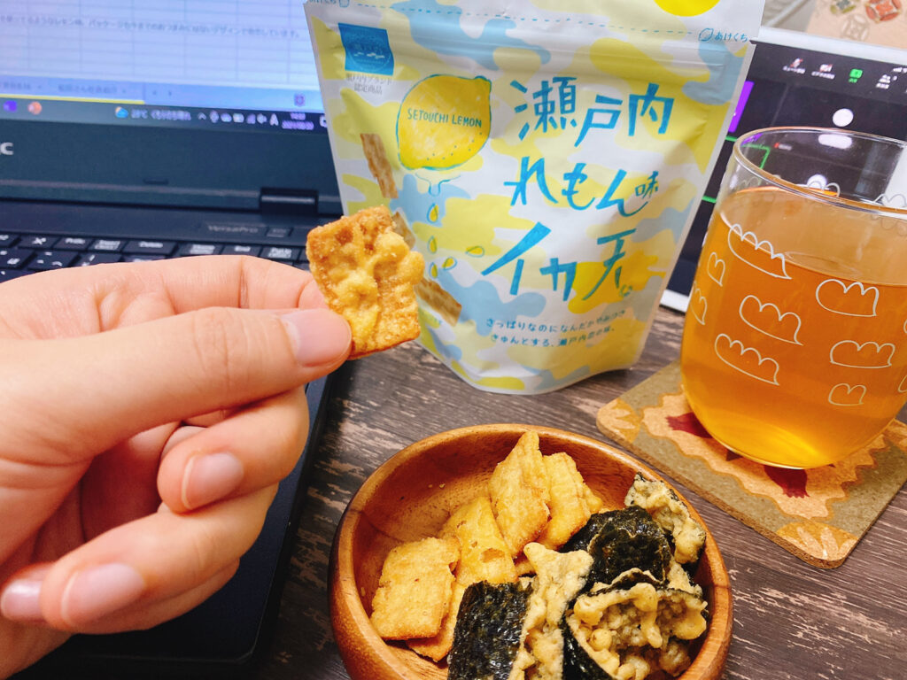 ของว่างทานเล่นที่ผสานความกรุบกรอบของสแน็กเข้ากับรสชาติสดชื่นแบบ otsumami (ของทานเล่นคู่เครื่องดื่ม) สินค้ายอดฮิตที่ได้รับแรงบันดาลใจจากทะเลเซโตอุจิอันงดงาม ต้องนึกถึง ปลาหมึกทอดกรอบรสเลมอนเซโตอุจิ สินค้าขายดีตลอดกาลจากบริษัท มารุคะ โชคุฮิน (まるか食品) ซึ่งตั้งอยู่ในจังหวัดฮิโรชิม่า